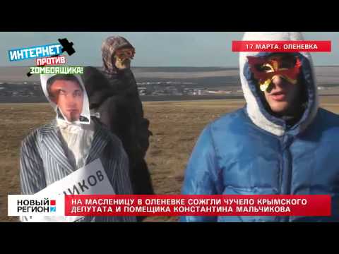 Инициативная группа жителей села Оленевка (Черноморский район, Крым) в Прощеное воскресенье, 17 марта сожгла чучело местного помещика, члена президиума Верховного Совета Крыма Константина Мальчикова. Таким образом оленевцы решили выразить протест против деятельности Мальчикова в селе и встретить новую весну уже без него. Об этом на видеозаписи, переданной в редакцию «Нового Региона», говорит представитель инициативной группы в маске.