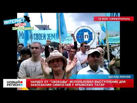 «По поручению Олега Тягнибока я передаю вам искренний привет, братья крымские татары, с тем, что вы сохраняете свою национальное достоинство, что на земле своих пращуров вы отстаиваете свое право на самоидентификацию, право на будущее своих детей и внуков. И я хочу гарантировать вам от имени нашей политической силы, что в Верховной Раде Украины у вас есть свои представители. У вас есть уважаемый Мустафа-эфенди, но у вас есть и «Свобода», которая приложит все усилия, чтобы наконец-то ваш многострадальный народ получил право на самовыражение общего унитарного государства Украина, потому что мы с вами много веков плечо к плечу боролись за свою независимость от разных оккупантов, с разными захватчиками», – заявил Леонов. – Я уверен, что в нашем объединении наша сила. Ещё раз хочу вам сказать, что мы с вами хозяева на этой богом данной земле. И только мы с вами, крымские татары и украинцы, можем определить, как нам жить и как воспитывать своих детей и как нам управлять государством».