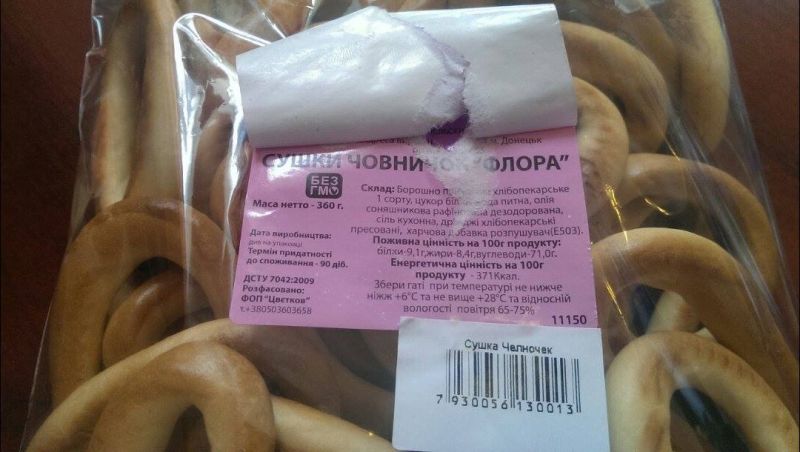 Как передает корреспондент NDNews, на днях симферополец приобрел в одном из местных магазинов сушку «Челночок». На этикетке значилось, что производителем является некий индивидуальный предприниматель Пащенко из Ставропольского края Российской Федерации. Но при более внимательном изучении покупки мужчину ожидал сюрприз: под российской этикеткой оказалась еще одна. На ней на украинском языке сообщалось, что сушка изготовлена в городе Донецк, а ее производителем является «ФОП Цветков». «А когда этикетку приподнял, то оказалось, что они украинского производства. Вот вам и современный маркетинг», – недоумевает покупатель.