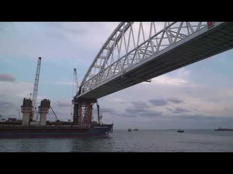 Под железнодорожной аркой Керченского моста прошло первое судно – российский сухогруз «Святитель Алексий».