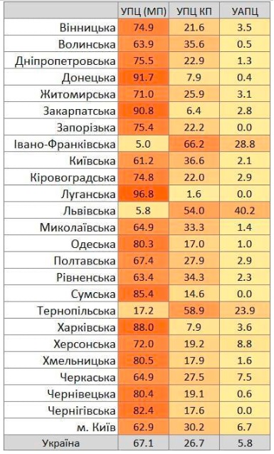 Подтвердил малочисленность сторонников раскольников украинский политолог Михаил Павлив, опубликовав соответствующую таблицу.