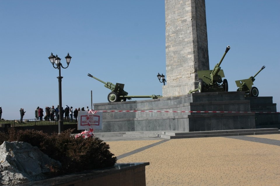 В преддверии 75-й годовщины освобождения Керчи от фашистских захватчиков, которую отметят в городе 11 апреля, там же, на Митридате, аварийным был признан Обелиск Славы, в связи с разрушением кладки. Мемориал по периметру обнесли лентой-ограждением, к слову, уже порванной во многих местах, и примотали скотчем убогие картонные предупреждения «Вход воспрещен».