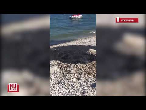 В Коктебеле пляж, забитый туристами, залило черной жижей.