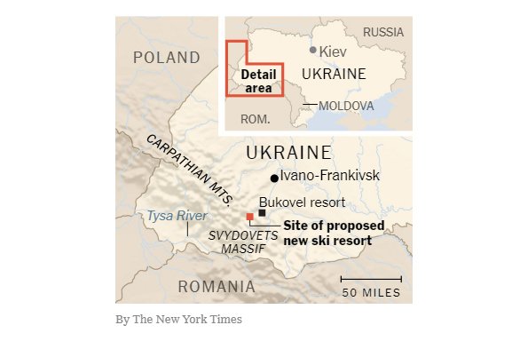 Карта служит иллюстрацией к публикации о планах олигарха Коломойского построить новый курорт в Карпатах. И, судя, по обозначенным границам, издание считает полуостров частью России.