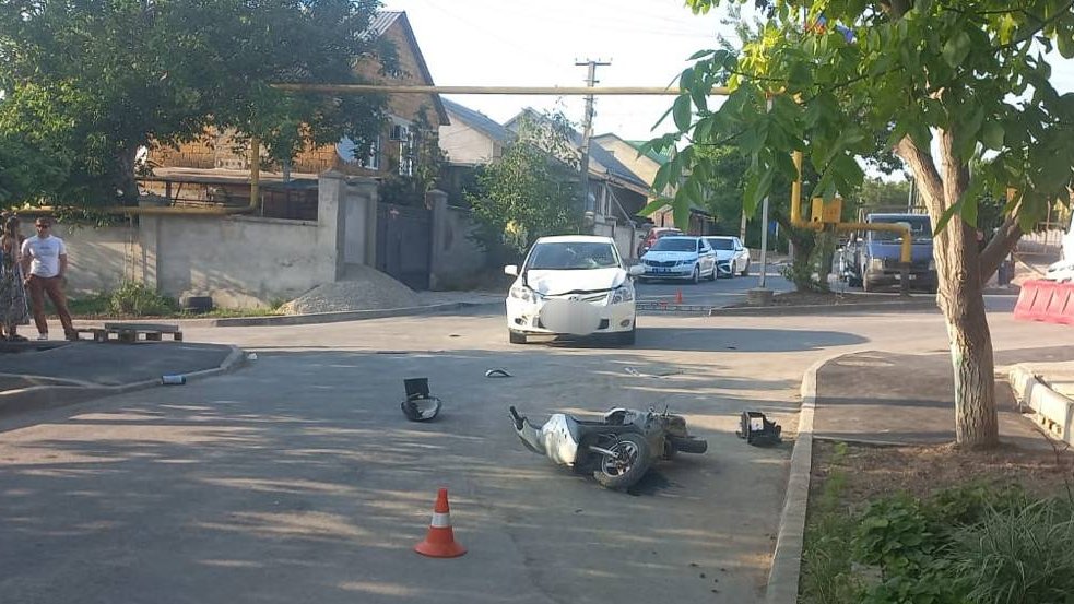 ДТП произошло в Бахчисарае. Водитель легкового автомобиля при проезде нерегулируемого перекрестка не уступил дорогу мопеду, на котором находились двое несовершеннолетних.