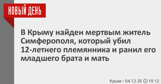 По данным ведомства, в ночь на 2 декабря в частном доме в переулке Русский в Симферополе мужчина помощи кухонного топорика убил своего 12-летнего племянника, ранил его 6-летнего брата и мать мальчиков.