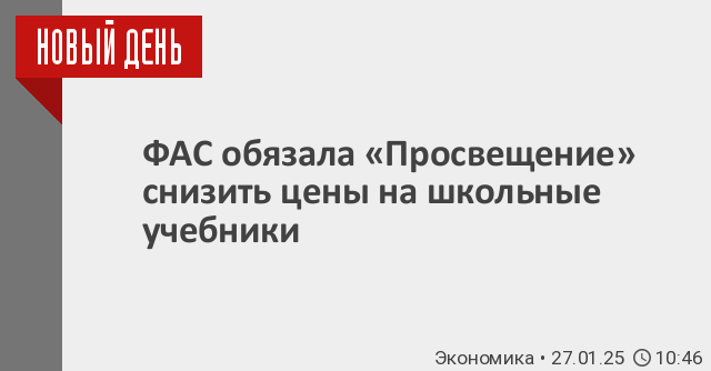 Федеральная антимонопольная служба признала издательство «Просвещение» нарушившим антимонопольное законодательство на рынке школьных учебников. Ведомство предписало издательству снизить цены на учебники и перечислить в бюджет более 2 млрд незаконно полученного дохода, сообщает пресс-служба ФАС.