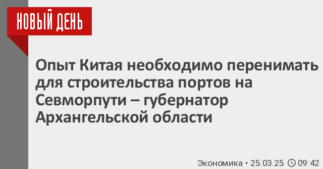 России необходимо перенимать опыт Китая по перевозке грузов для строительства портов на Северном морском пути (СМП). Такое мнение в интервью ТАСС высказал редседатель комиссии Госсовета по направлению «Международная кооперация и экспорт», губернатор Архангельской области Александр Цыбульский.