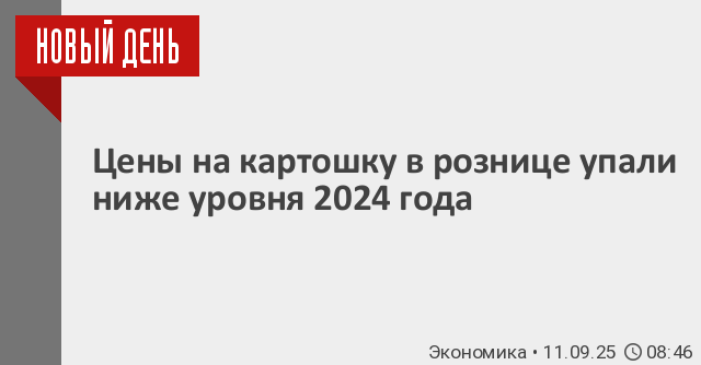 По данным на 9 сентября, килограмм картошки стоит в среднем 43,7 рубля, что на 15% ниже показателей 2024 года.