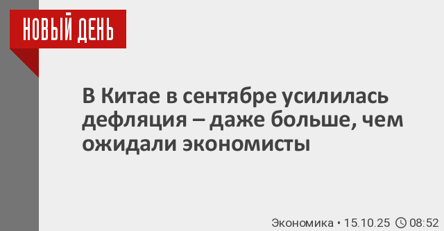 Потребительские цены в Китае в сентябре продолжили падать, причем более резко, чем ожидалось, согласно опубликованным в среду официальным данным, на фоне слабых расходов домохозяйств и сохраняющегося дефляционного давления.