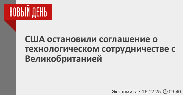 Соединенные Штаты приостановили действие соглашения с Великобританией о технологическом сотрудничестве. Напомним, что оно было подписано Дональдом Трампом в сентябре 2025 года во время его государственного визита в страну.