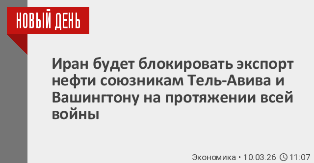 Представитель Корпуса стражей исламской революции заявил во вторник, что иранские силы «не допустят» экспорта добываемой в регионе нефти в страны, союзные Соединенным Штатам и Израилю, пока продолжается война на Ближнем Востоке.
