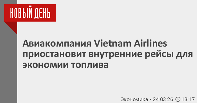 Вьетнамская национальная авиакомпания Vietnam Airlines со следующего месяца приостановит выполнение почти 20 внутренних рейсов в неделю из-за проблем с поставками топлива, связанных с войной на Ближнем Востоке.