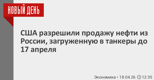США разрешили операции по продаже российской нефти, загруженной на танкеры до 17 апреля. Об этом говорится в документе министерства финансов страны.