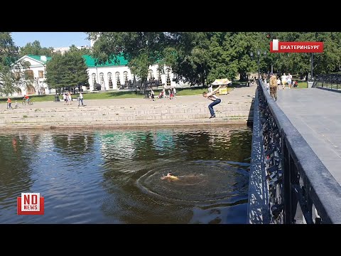 Сегодняшняя летняя погода способствовала тому, что жители Екатеринбурга, уставшие от самоизоляции, открыли купальный сезон прямо в центре города – в той части реки Исеть, которая протекает в Историческом сквере.