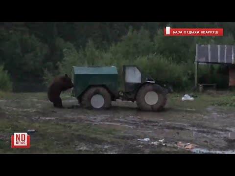 На видеозаписи, которую прислали в редакцию читатели, видно, что дикий зверь пытается сломать замок на кузове небольшого грузовичка. «Рядом много людей, которые в палатках живут, а не на базе. Их надо предостеречь», – пишет автор видео.