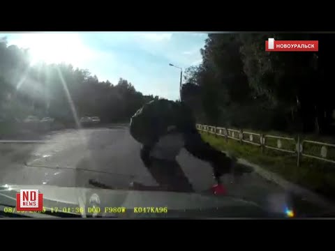 Автомобиль сбивает велосипедиста