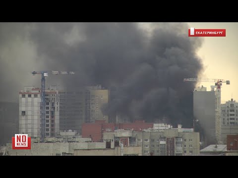 В Екатеринбурге произошел сильный пожар на улице Щорса недалеко от Южного автовокзала. Черный столб дыма и огромное пламя было видно за несколько километров.