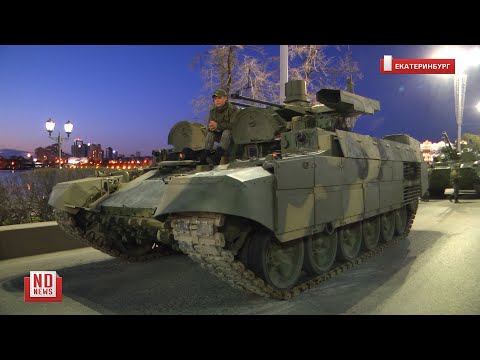 Сегодня вечером в Екатеринбурге военная техника отрепетировала парад Победы. За несколько часов до этого дороги в центре города перекрыли, но на этот раз (в отличие от 21 апреля) пробки были ожидаемые. Пешеходов, как и год назад, близко в месту действия не подпустили, на проспекте Ленина людей не было.