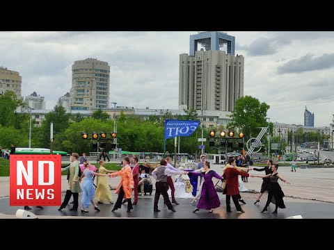 В центре Екатеринбурга провели бал-ассамблею в честь 350-летия Петра Первого. Гостей встречали сам первый российский император и его жена Екатерина.