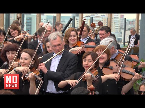 Сегодня на крыше ЖК «Форум Сити» в центре Екатеринбурга прозвучал «Музыкальный момент» Франца Шуберта в исполнении Уральского филармонического оркестра.