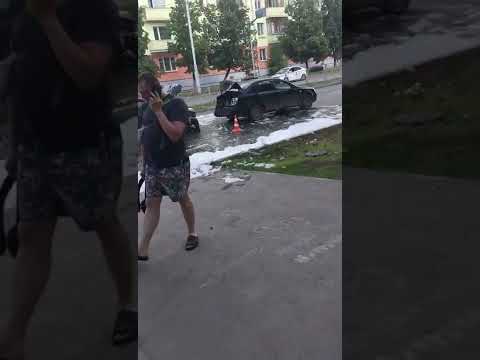 В Каменске-Уральском на улице Кунавина сегодня днем столкнулись два автомобиля, «Рено» врезался в «Шевроле». Один из них после аварии загорелся.