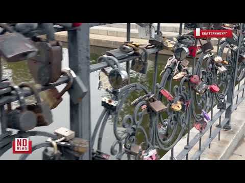 В Екатеринбурге рабочие заканчивают зачищать мост в Историческом сквере от замочков, которые сюда вешали влюбленные. За несколько лет их накопилось огромное множество.