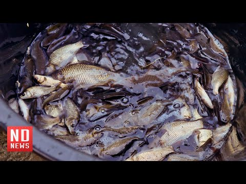 Госинспектор отдела госконтроля надзора охраны водных биологических ресурсов и среды обитания по Свердловской области Нижнеобского территориального управления федерального агентства по рыболовству Александр Ковалев рассказл: «Сегодня мы зарыбляем сазаном Верхне-Сысертский водоем, где много щуки и судака. У нас был мор от травы – она выделяла ядовитые вещества, рыба задохнулась, и необходимо большое воспроизводство. И сейчас мы занимаемся компенсационными зарыблениями. Ответственные предприятия, которые участвуют в этом, покупают рыбу, заключают договора, привозят ее и зарыбляют молодью». Перед запуском мальков в пруду измерили температуру воды, чтобы у них не было термического шока.