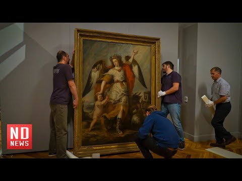 34 картины великих испанских художников доставили из Государственного Эрмитажа на больших фурах. Каждая работа – в отдельном ящике, тщательно упакована и закреплена. Каждая – застрахована на десятки и сотни миллионов рублей. Сегодня в «Эрмитаж Урале» продолжают распаковывать полотна. В частности, из ящика достали одну из самых масштабных работ – картину Антонио Переда «Ангел Хранитель», написанную в 1646 году. После извлечения из рамы холст тщательно осматривают кураторы выставки от центра «Эрмитаж Урал», затем – от Государственного Эрмитажа. Нужно убедиться, что нет никаких повреждений. Такую же процедуру проделают, когда картина вернется «домой».