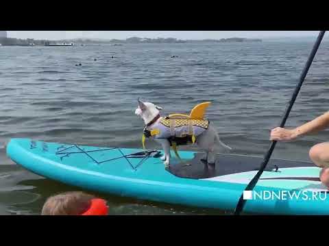 Толпы загорающих замечены сегодня на берегу Верх-Исетского пруда. Особо отважные идут охлаждаться в воду. Здесь же мы заметили маленькую акулу: хозяйка нарядила своего пса в спасательный жилет с плавником, и собака радостно плавает.