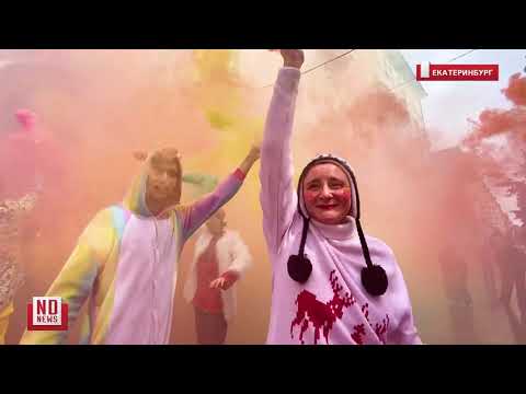 В Екатеринбурге проходит фестиваль «Коляда-Plays». На церемонии открытия актеры, несмотря на холодный ливень, устроили уличное шоу с танцами в пене и цветным дымом. Присоединиться к артистам могли все желающие.