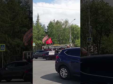 По центру Екатеринбурга вновь разъезжает автомобиль с макетом ракеты на крыше с подписью «На Вашингтон!». Такие акции устраивают активисты НОД, демонстрируя свою политическую позицию.