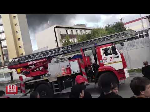 Сотрудники МЧС продолжают бороться с пожаром в здании НПО автоматики на улице Дерябиной.