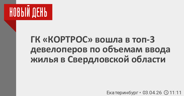 Группа компаний «КОРТРОС» заняла вторую позицию в рейтинге застройщиков Свердловской области по объемам ввода жилья в 2026 году.