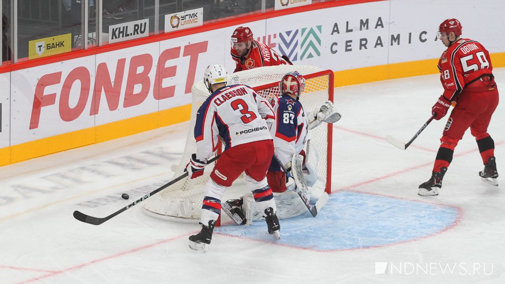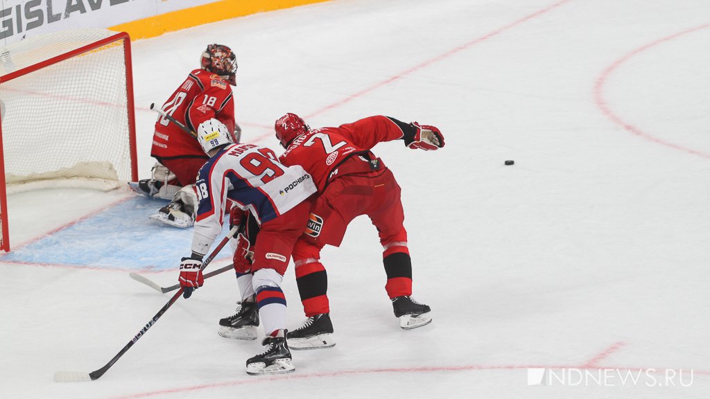 Впрочем на хоккейном льду события складывались более драматично, чем торжественные речи. «Автомобилист» пропустил гол на 9-й минуте от Станислава Галиева. Начало второго периода хозяева и вовсе провалили, а ЦСКА забил еще дважды: сначала отличился Прохор Полтапов, а затем в меньшинстве гол забил Максим Мамин. Через несколько секунд «Автомобилист» всё же реализовал численное преимущество – Ник Меркли удачно воспользовался рикошетом и отправил шайбу в ворота соперника. Еще до перерыва москвичи забили четвертый гол – это снова был Прохор Полтапов. Тренерский штаб «Автомобилиста» заменил вратаря, и на лед вместо Евгения Аликина вышел Владимир Галкин. Рокировка пошла на пользу екатеринбургской команде. В третьем периоде хозяева были близки к камбэку. На 53-й минуте Никита Трямкин кистевым броском отправил шайбу точно в девятку, а на 58-й минуте третий гол забил Сергей Зборовский. В последние секунды основного времени матча «Автомобилист» штурмовал зону ЦСКА, оставив пустыми собственные ворота – но спасти игру не удалось.