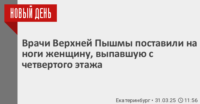В Верхней Пышме медики спасли 50-летнюю женщину, которая выпала из окна четвертого этажа. У пациентки были тяжелые травмы таза и бедра, которые сопровождались сильным внутренним кровотечением.