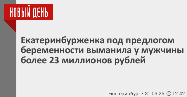 Екатеринбурженка под предлогом беременности выманила у мужчины более 23 миллионов рублей