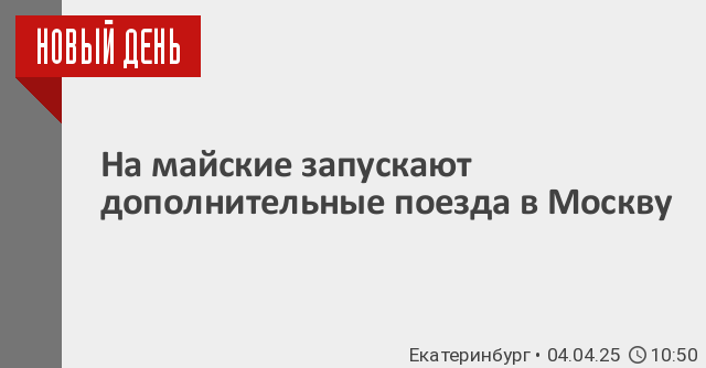В майские праздники из Екатеринбурга будут запущены дополнительные поезда в Москву, сообщили в пресс-службе Свердловской железной дороги. Так, к регулярному расписанию добавят поезд № 239 Екатеринбург – Москва, он отправится 3 и 9 мая в 04:25. Обратный поезд № 240 отправится из столицы 30 апреля и 6 мая в 21:05.