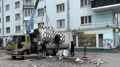 В центре Екатеринбурга сломали и увезли медведя Гришу