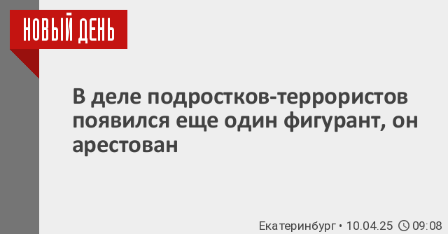 Как ранее писал «Новый День», три ранее выявленных фигуранта арестованы до 21 июня. По версии следствия, в ночь на 22 декабря 2024 года подростки, используя бутылки с легковоспламеняющейся жидкостью, подожгли служебную автомашину органов внутренних дел, стоявшую на парковке на улице Чапаева в Екатеринбурге. Автомобиль получил значительные повреждения и восстановлению не подлежит. Кроме того, подростки 16 и 17 лет планировали совершение теракта с использованием самодельного взрывного устройства в местах массового пребывания людей в Екатеринбурге. У злоумышленников изъяли компоненты СВУ и средства связи с инструкциями по его изготовлению.