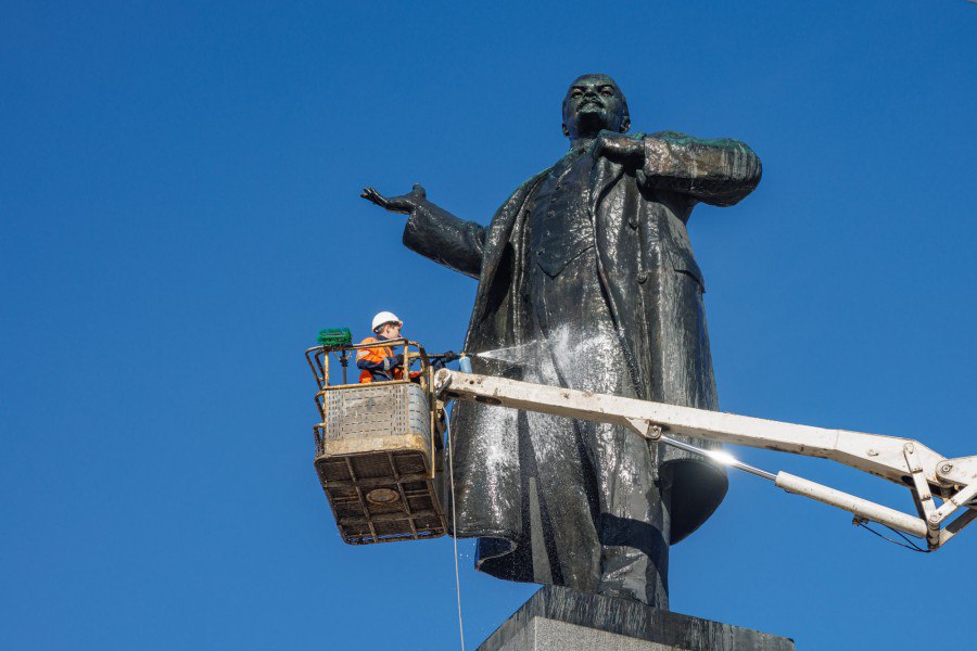 Сегодня утром на площади 1905 года помыли памятник Ленину. Мероприятие прошло в рамках Месячника чистоты и преддверии празднования юбилея Великой Победы, сообщили в мэрии.