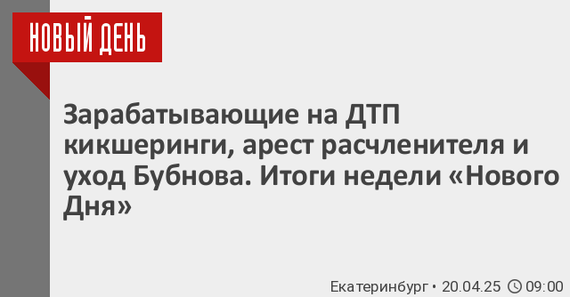 Закончилась очередная неделя, и редакция «Нового Дня» подводит ее итоги. Кикшеринговые компании зарабатывают на травмированных в ДТП. Александра Гоока, расчленившего тагильчанку полгода назад, отправили за решетку. А в мэрии Екатеринбурга ликвидировали должность вице-мэра Алексея Бубнова. Об этом и других событиях недели – в рубрике «Итоги».