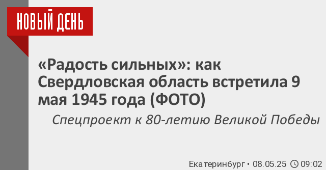 80 лет назад закончилась Великая Отечественная война. Новость пришла в Свердловск рано утром, люди выбежали на улицы. Они поздравляли друг друга, отправляли телеграммы в другие города, проводили стихийные митинги на заводах и в колхозах, на эмоциях писали стихи и отправляли их в редакции газет. Подробнее о том, как это было, «Новый День» прочитал в газете «Уральский рабочий» от 9 мая 1945 года, которая сохранилась в библиотеке Государственного архива Свердловской области.