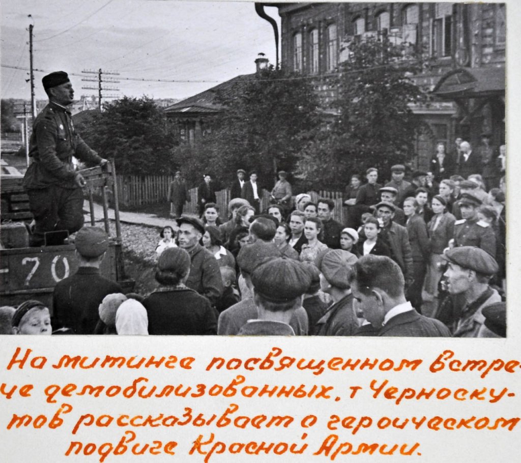 «Около 7 тысяч человек собрались сегодня рано утром на митинг. Гремел оркестр победной медью, светились лица улыбками счастья – победа, победа!