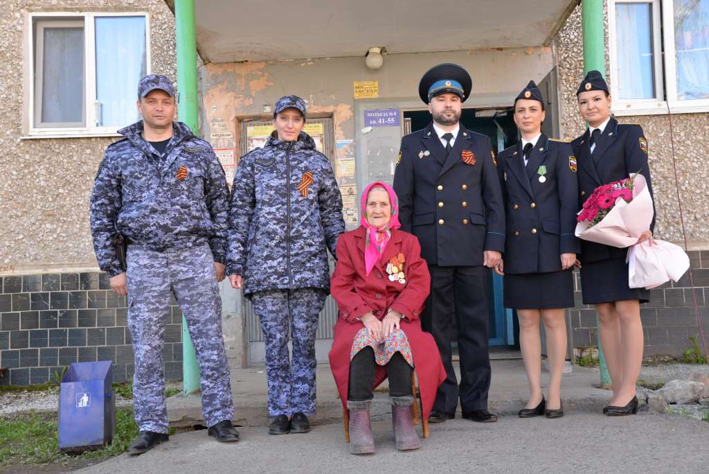 Сотрудники Росгвардии провели в Верхней Пышме парад у дома ветерана – 94-летней труженицы тыла Сании Хасановой.