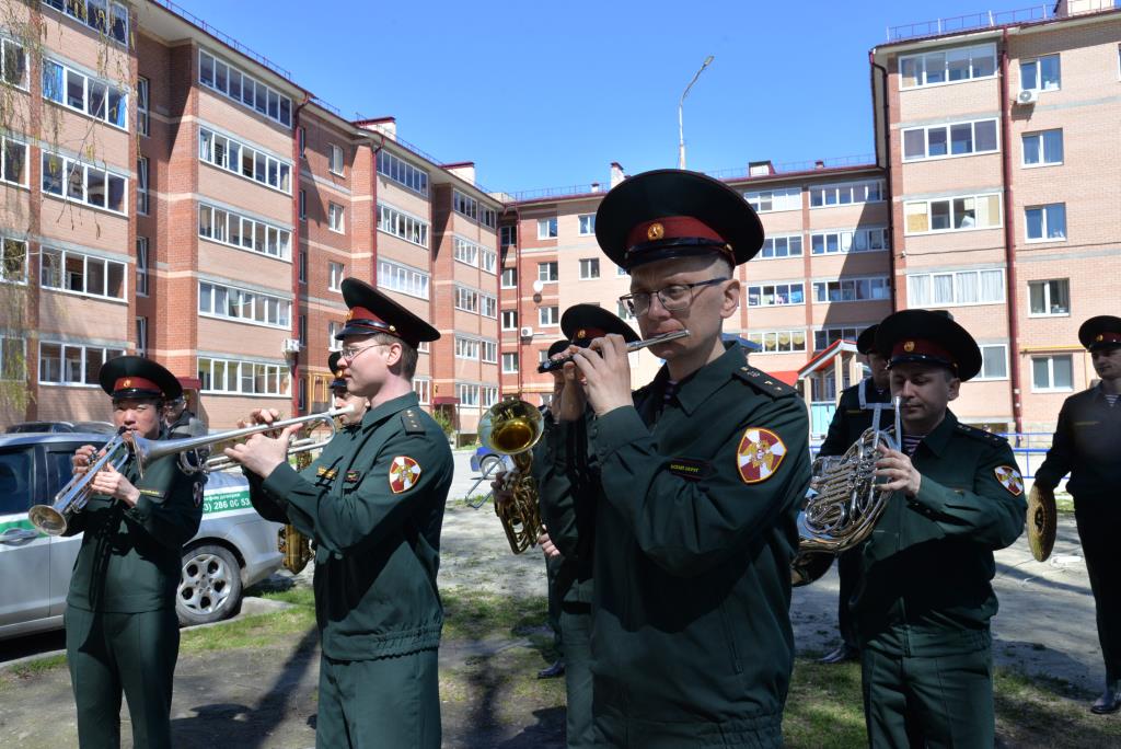 Поздравить ветерана труда приехал оркестр штаба Уральского округа войск национальной гвардии. Солист ансамбля песни и пляски Вадим Таланов исполнил песни военных лет, в том числе «День Победы» Давида Тухманова.