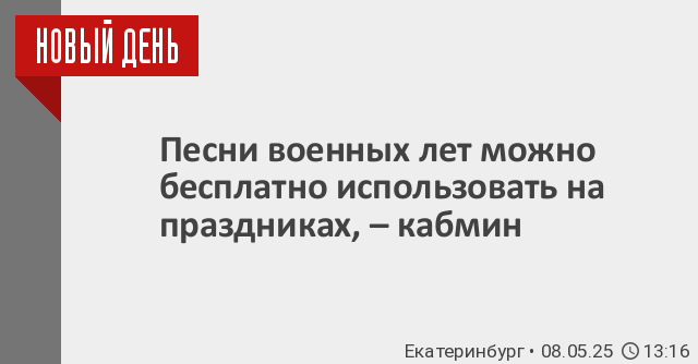 «Подписанное распоряжение – часть работы по реализации новых норм федерального закона «Об увековечении Победы советского народа в Великой Отечественной войне 1941-1945 годов». Они предписывают правительству сформировать общедоступный перечень правомерно обнародованных до 26 декабря 1991 года музыкальных произведений (с текстом или без текста), прославляющих народный подвиг в годы войны», – отметили в пресс-службе ведомства.
