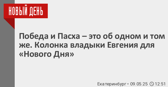 Митрополит Екатеринбургский и Верхотурский Евгений написал колонку для «Нового Дня», в которой рассказывает о связи событий, приведших к Победе 80 лет назад и дне сегодняшнем, событиях, которые разворачиваются вокруг современной России. «Новый День» приводит текст без правок.