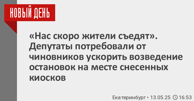 Екатеринбургские депутаты раскритиковали чиновников за не скоординированные действия по выносу киосков с становок общественного транспорта. Ларьки (а вместе с ними и навесы) убирают очень быстро, а установка новых остановочных комплексов идет крайне медленно. В результате горожане вынуждены ждать автобусы и троллейбусы буквально на пустырях – под дождем и снегом.