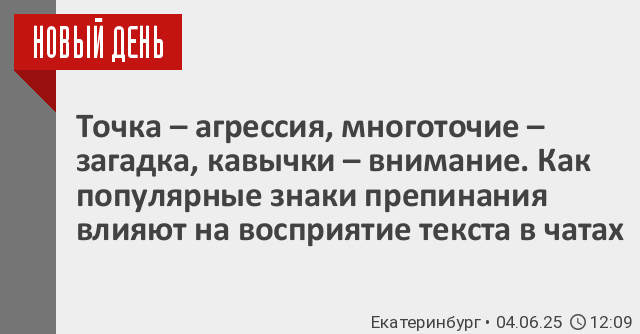 В современном онлайн-общении привычные знаки препинания – точка, многоточие и кавычки – приобретают новые функции и становятся своеобразными эмоциональными маркерами. Как они влияют на восприятие информации в мессенджерах, рассказала «Новому Дню» директор филологического факультета УрФУ Анна Плотникова.